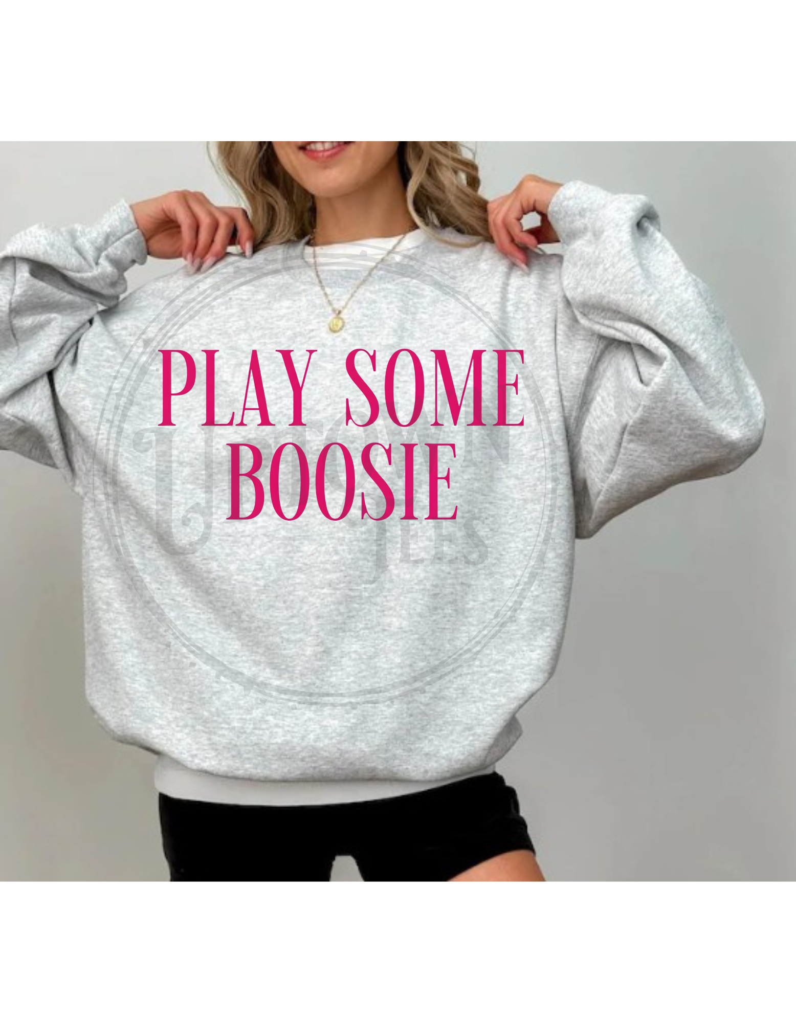 SHOWN ON GILDAN ASH GREY SWEATSHIRT. PLEASE NOTE THAT ALL SHADES WILL DIFFER BETWEEN BRANDS, BUT IT WILL ALWAYS BE AS CLOSE AS POSSIBLE.
